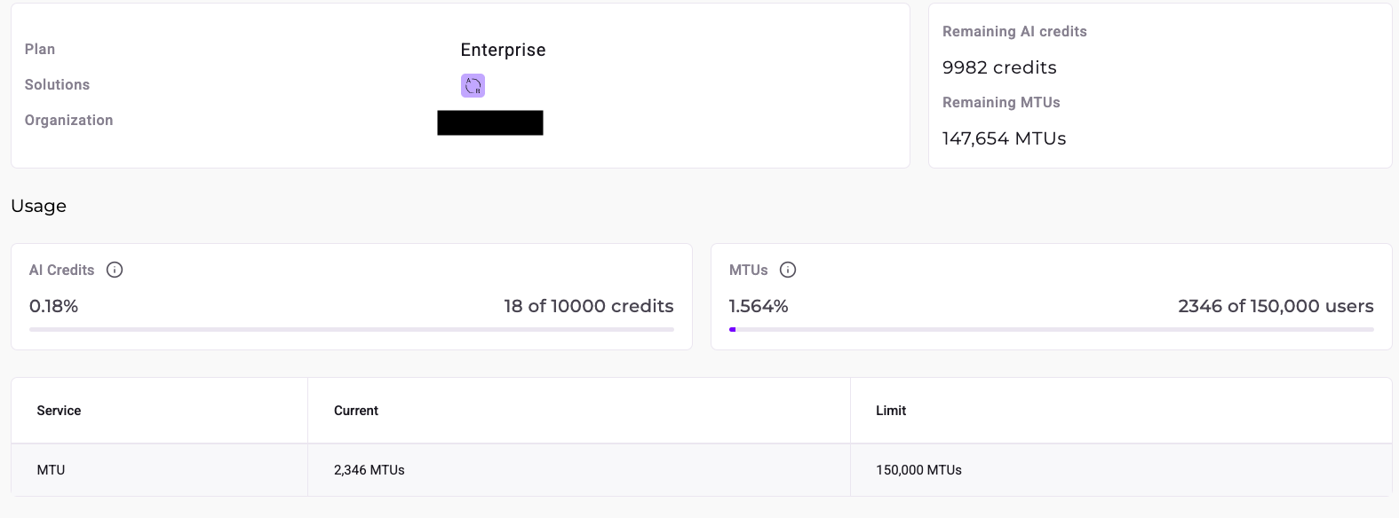 You can view your current MTU count on the Organization page (click Admin and select Organization).