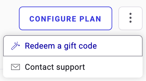 Click Configure plan in the top-right corner to view or request upgrades. You can: