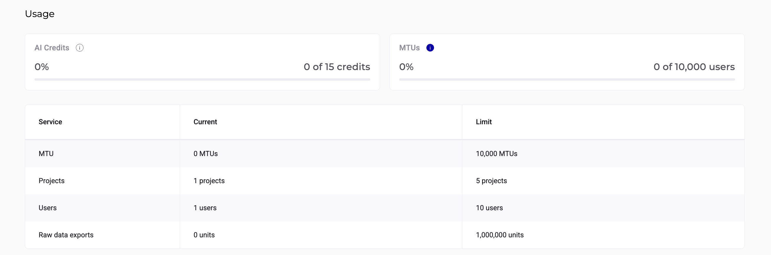 Use this table to track consumption and plan upgrades if you approach your limit.