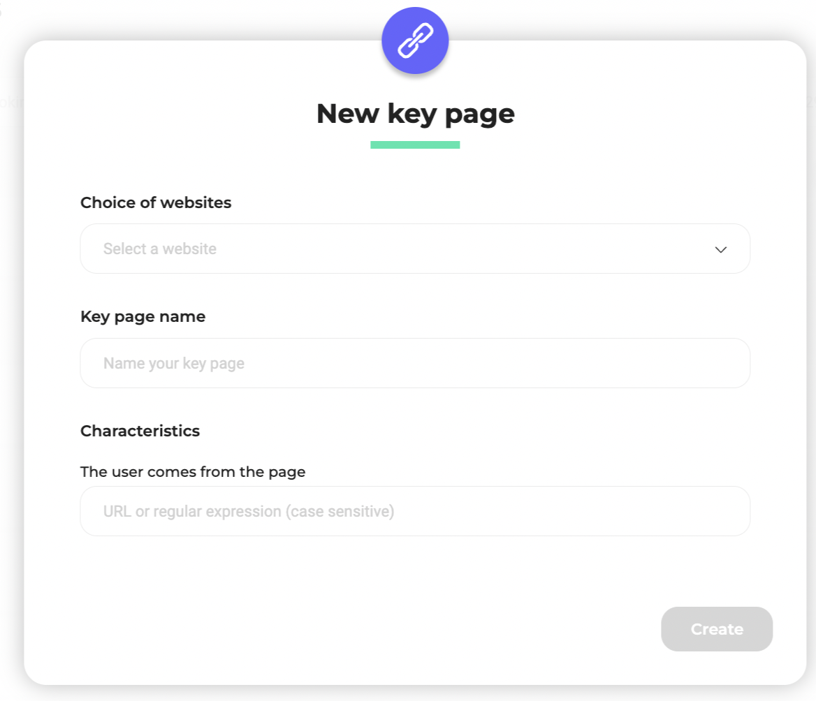 - Select your project(s), name your key page, and indicate the URL visitors must visit to be targeted.