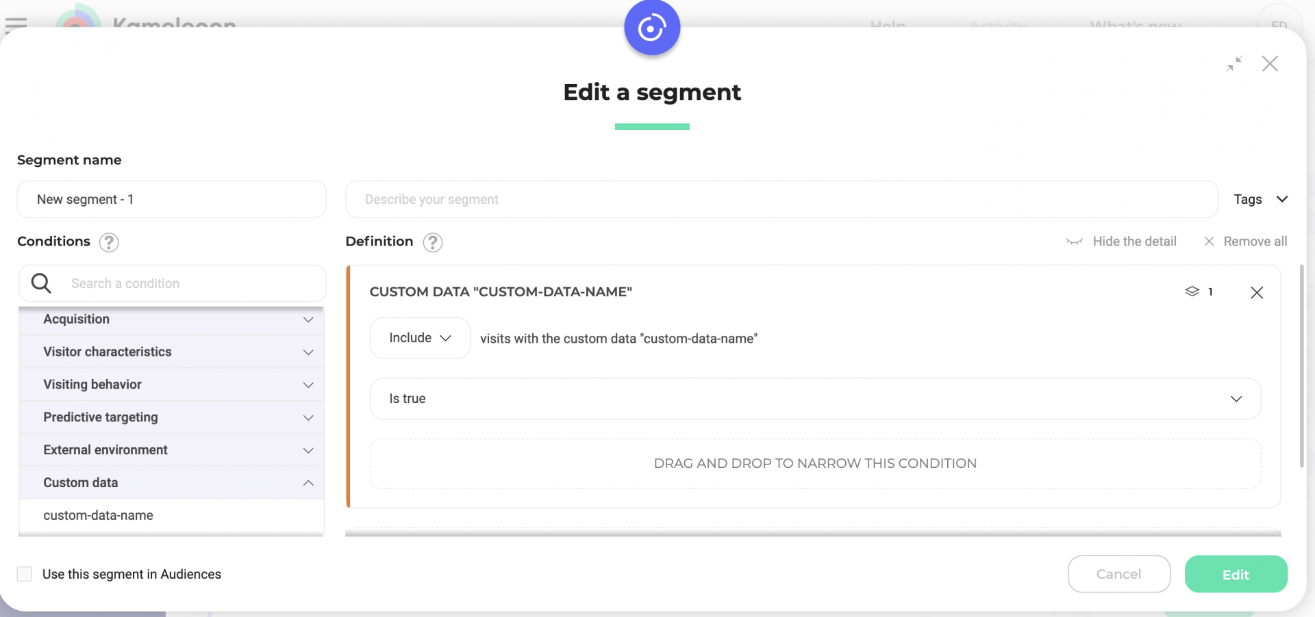 When activated, Kameleoon treats this custom data as a unique identifier for your visitors, which will be used to map several Kameleoon visits to a unique user. Learn more here.