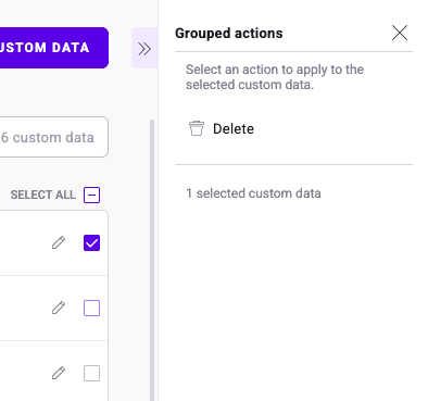 You can select multiple custom data at the same time and apply a common action to them. To select multiple custom data: