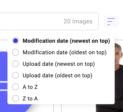 Click the Sort icon to change the images' display order. You can sort images by: