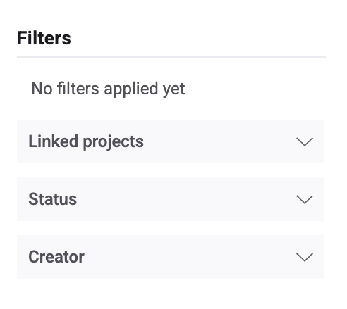 - Filter: Open the Filters sidebar to refine the list by Project or Status (Active/Inactive). Click Apply to update the list.