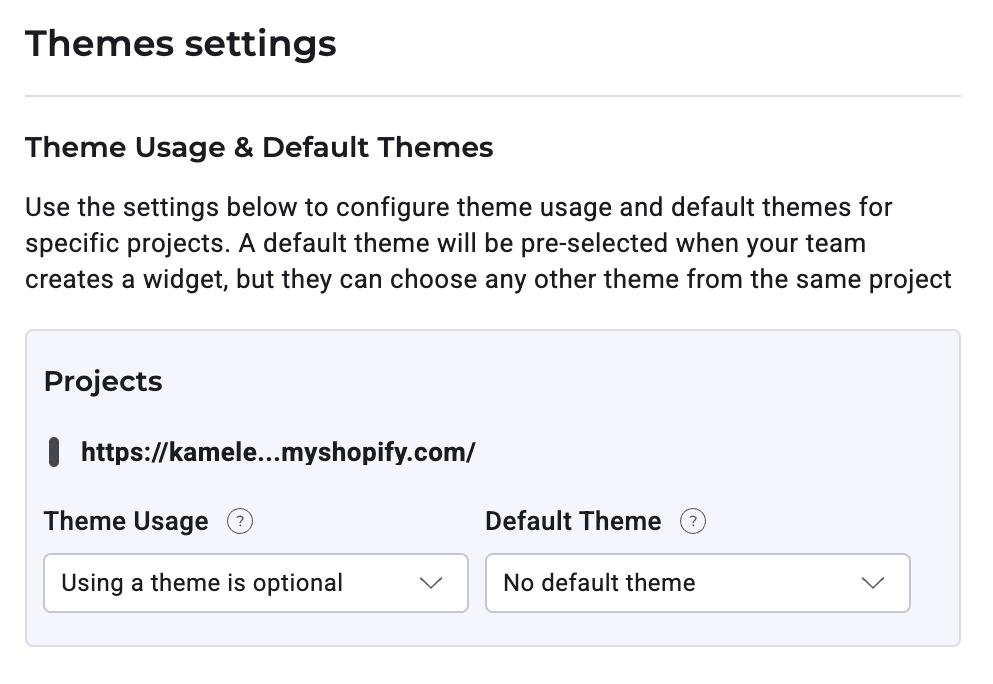 - (Optional) Select a Default Theme. This theme will be pre-selected for users creating new widgets in this project.