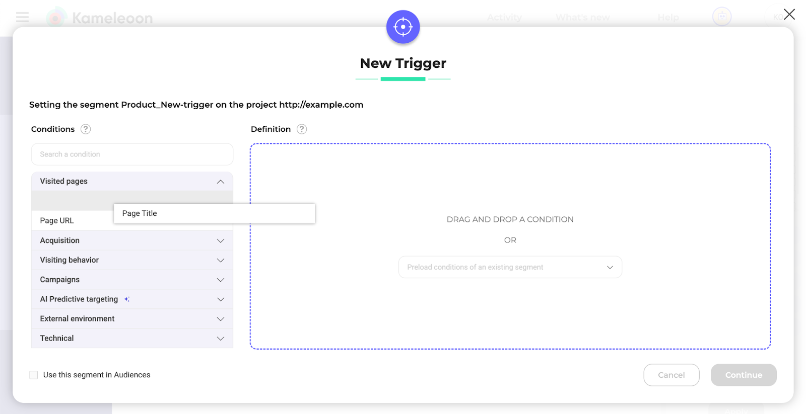 You can create, modify, and duplicate triggers using Kameleoon's Trigger Builder.