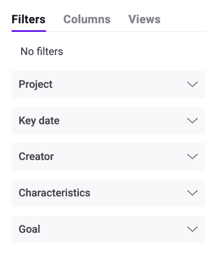 Hover over Project and click the chevron to sort triggers based on the website on which they are configured in alphabetical (or reverse alphabetical) order.