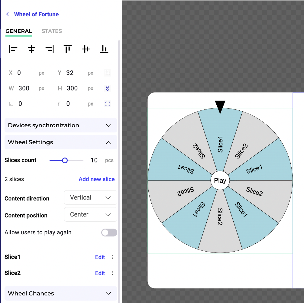 Under Wheel Chances, configure the probability for each slice to be selected.