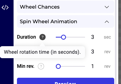 Set the spin animation settings under Spin Wheel Animation to customize how the wheel spins and stops.
