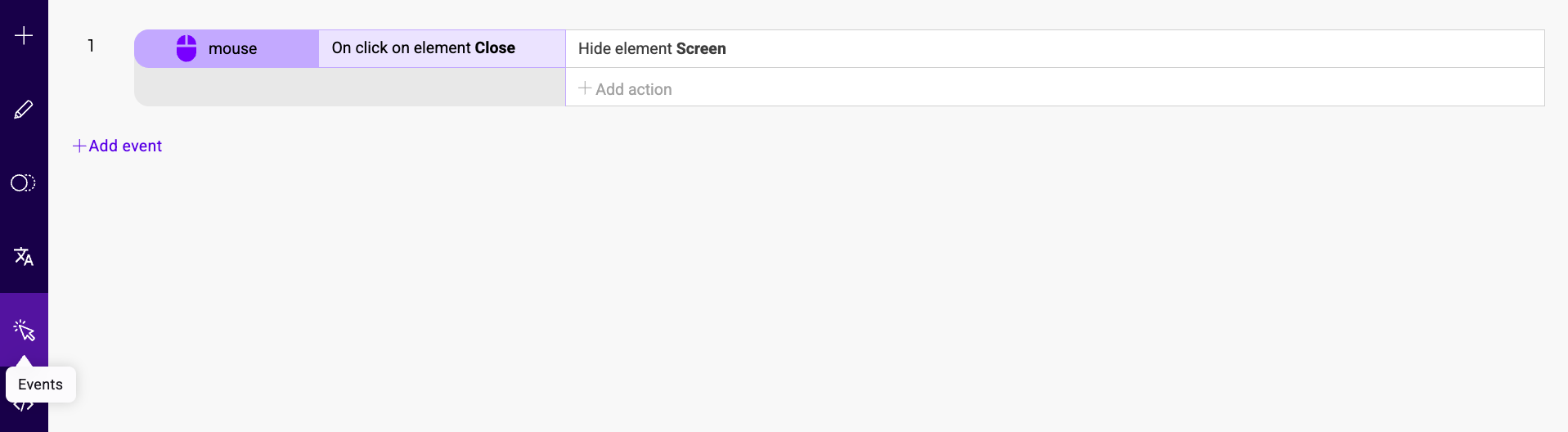 Actions use the same management interface as events. Right-click an action or use the three-dots menu to edit or delete it.