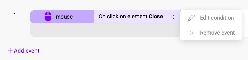 You can define how and when your widget behaves by associating events and actions. Events are triggers that detect specific visitor behaviors or page states, while actions are the responses that Kameleoon executes when those events occur.