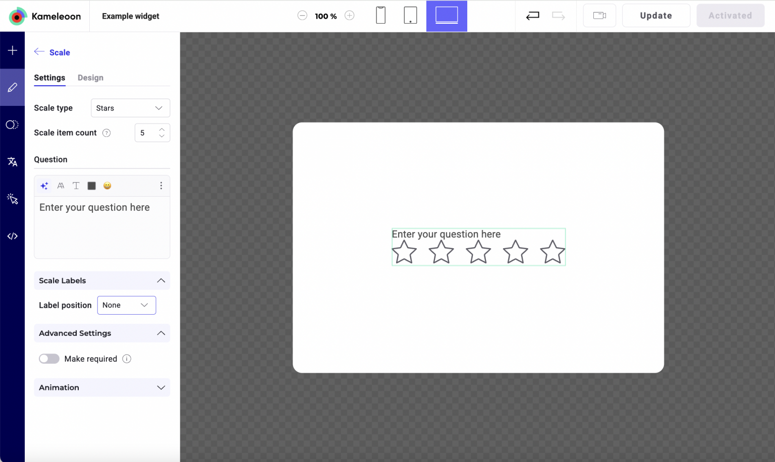 - Scale type: Emojis, Stars, Hearts, or Numbers.