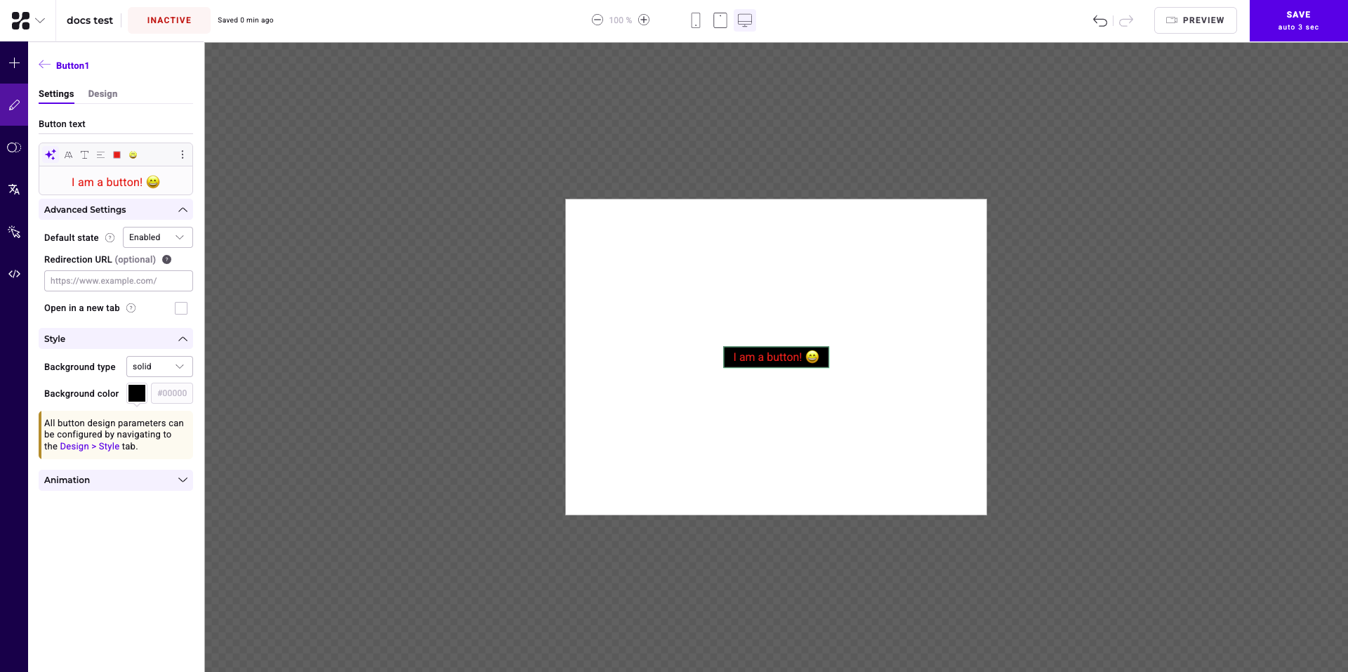- Animation: Select an entrance or exit animation for your button.