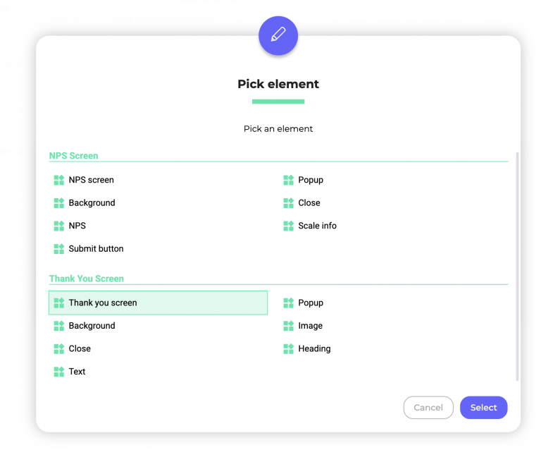 - Click Select an element > NPS.