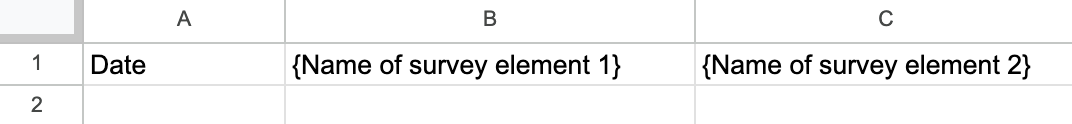 This widget has two survey elements. So, in the first row of the Google Sheet, we should enter: