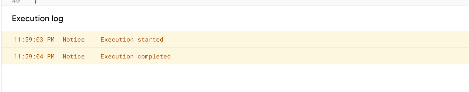 Once the correct permissions are given to the script, you should see the following output in the script editor console: