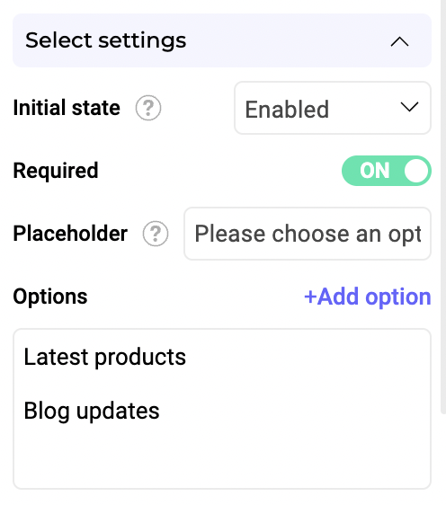 For visitors who choose Latest products, add a second select box (hidden by default) that includes: