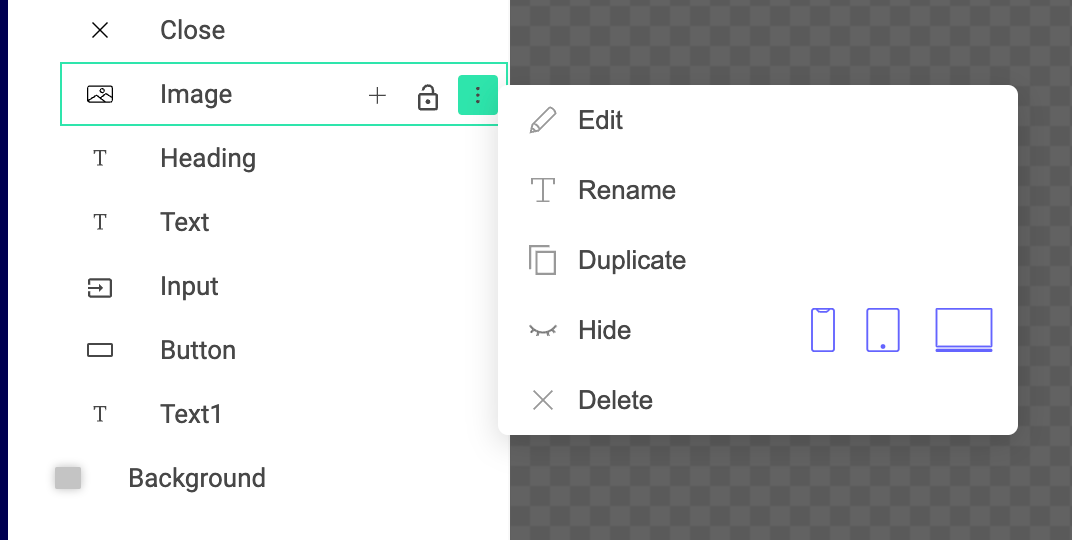If you previously hid an element on a specific device (in the three-dots menu), it is indicated by icons in the pop-in.