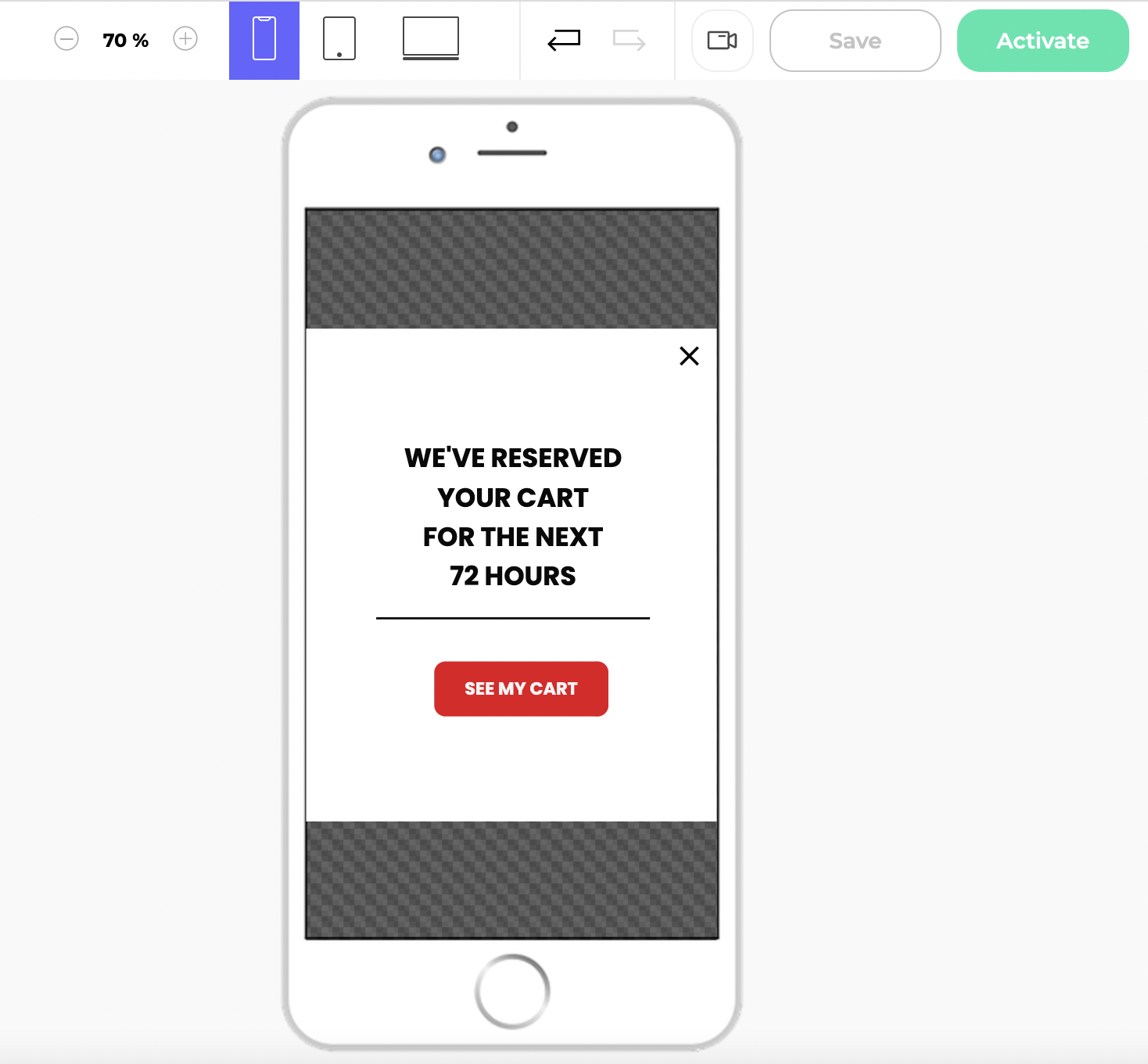 You can make your widget adaptable to your visitors' devices using the Kameleoon Widget Studio. Your widget is automatically responsive, but you can make changes to optimize user experience.