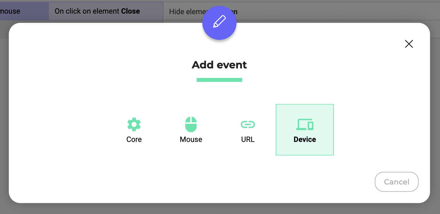 You can also configure an event to customize the display of your widget's elements depending on device. To add a Device type event:
