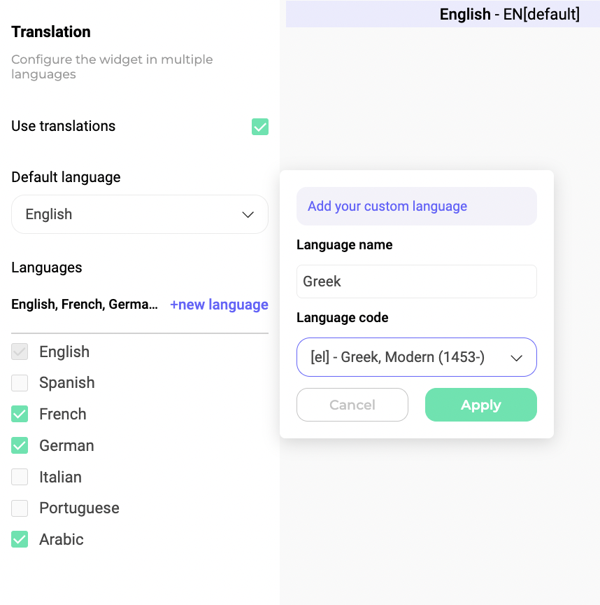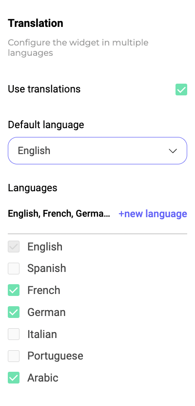 You should test your widget after setup to verify that all languages are correctly displayed and functional.