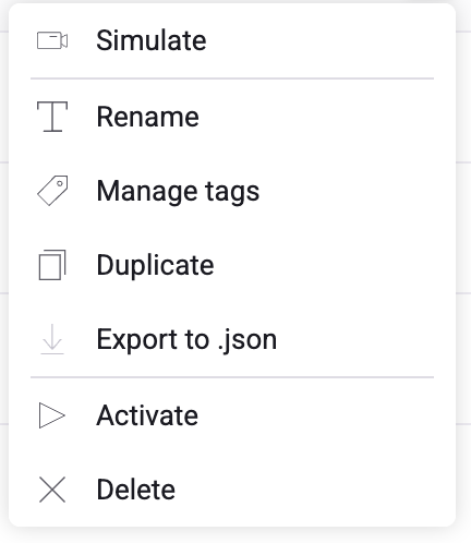 Click the three-dots menu on a widget's card to access the available actions. The actions depend on your widget's status.