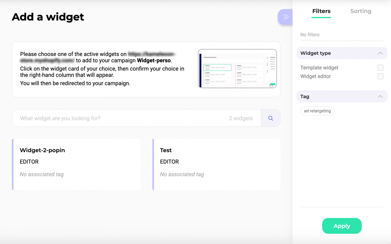 You will be redirected to your campaign. Continue setting up your widget as usual.