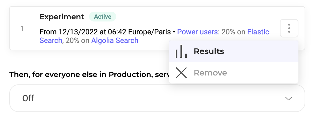 Kameleoon tracks your feature’s performance data based on the goals you identified when creating your test. You must have at least one goal to access your rules' Results page.