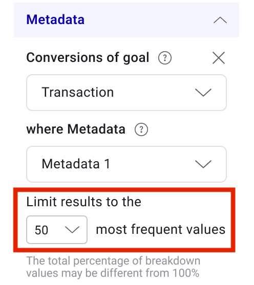 You can also limit how many metadata values appear by adjusting the Limit of values displayed selector.