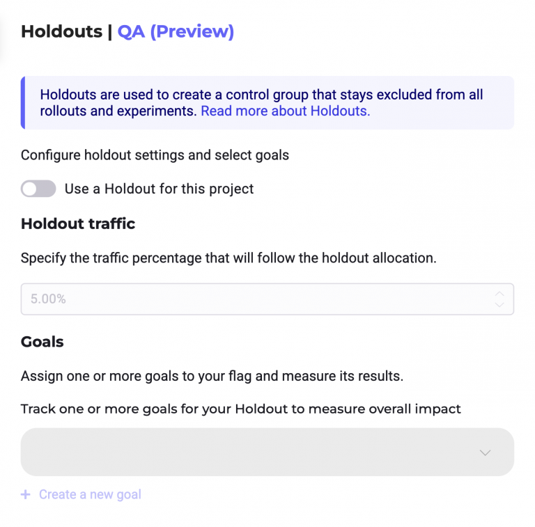 - Enable a holdout by toggling it on.