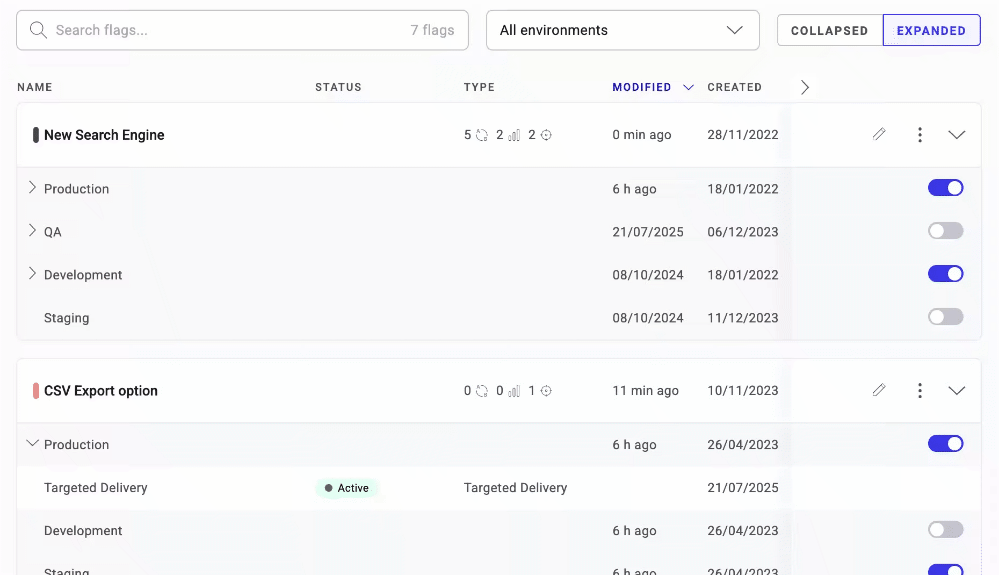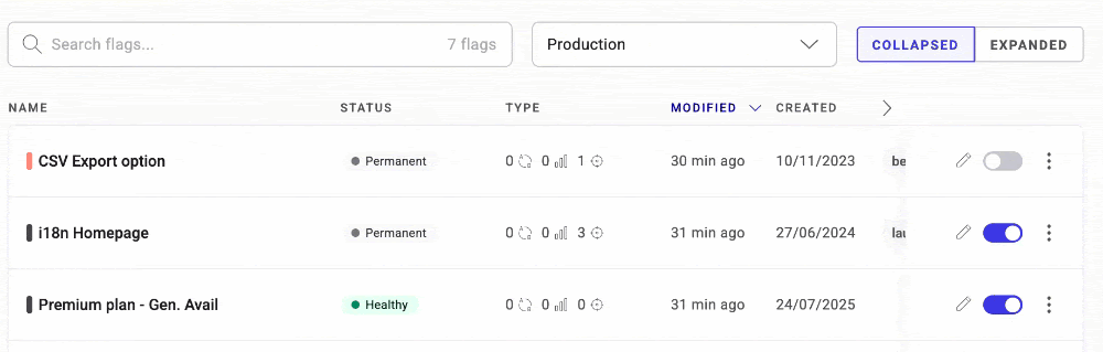 - Collapsed: Compact list of all flags, similar to the previous dashboard.
