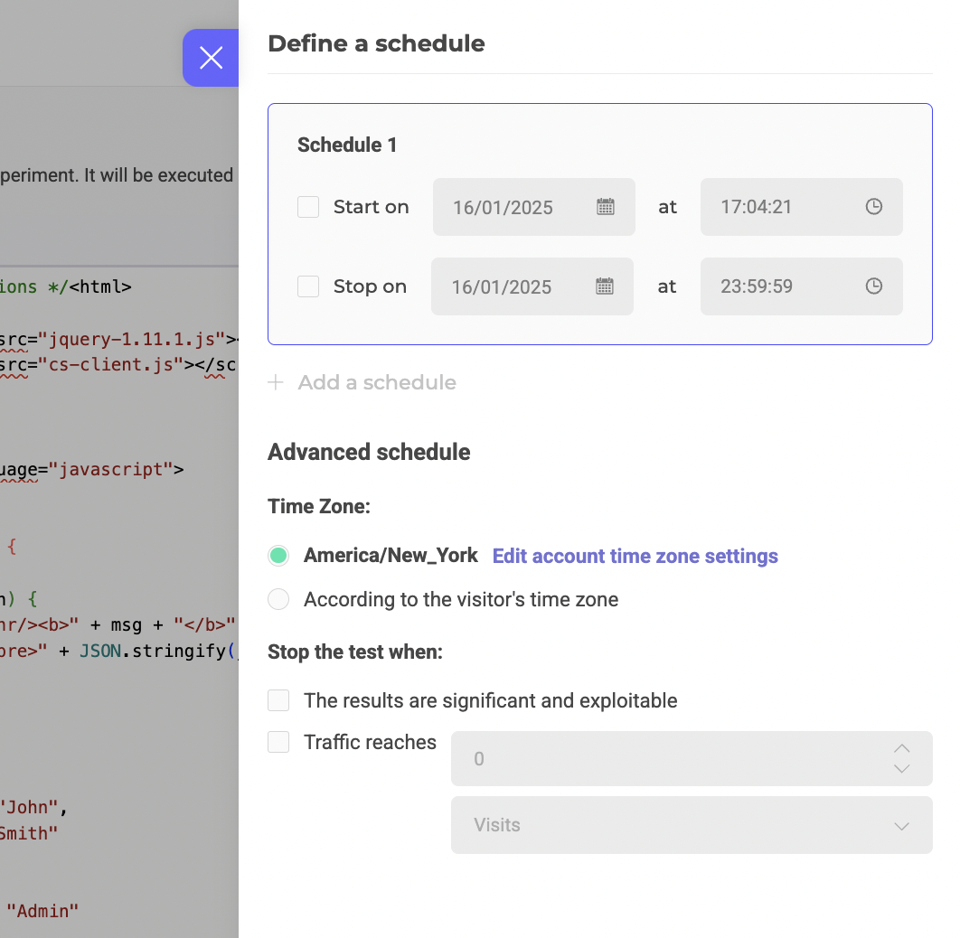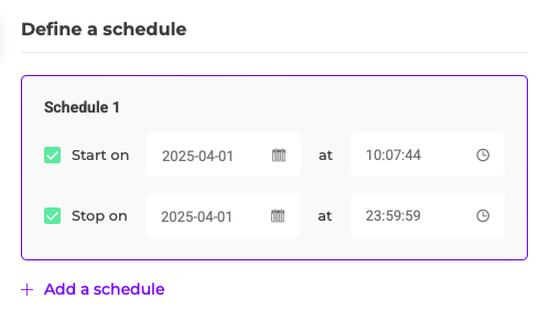 Click +Add a schedule to add multiple schedules to your experiment.
