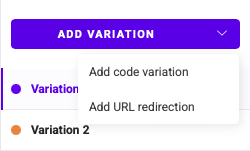 Click Add variation to add a new variation. Click the chevron to add a code variation or a URL redirection.