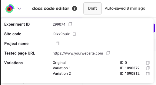 Here, you can manage your experiment's main information. You can specify the URL that the editor loads, your experiment's tags, and its hypothesis.