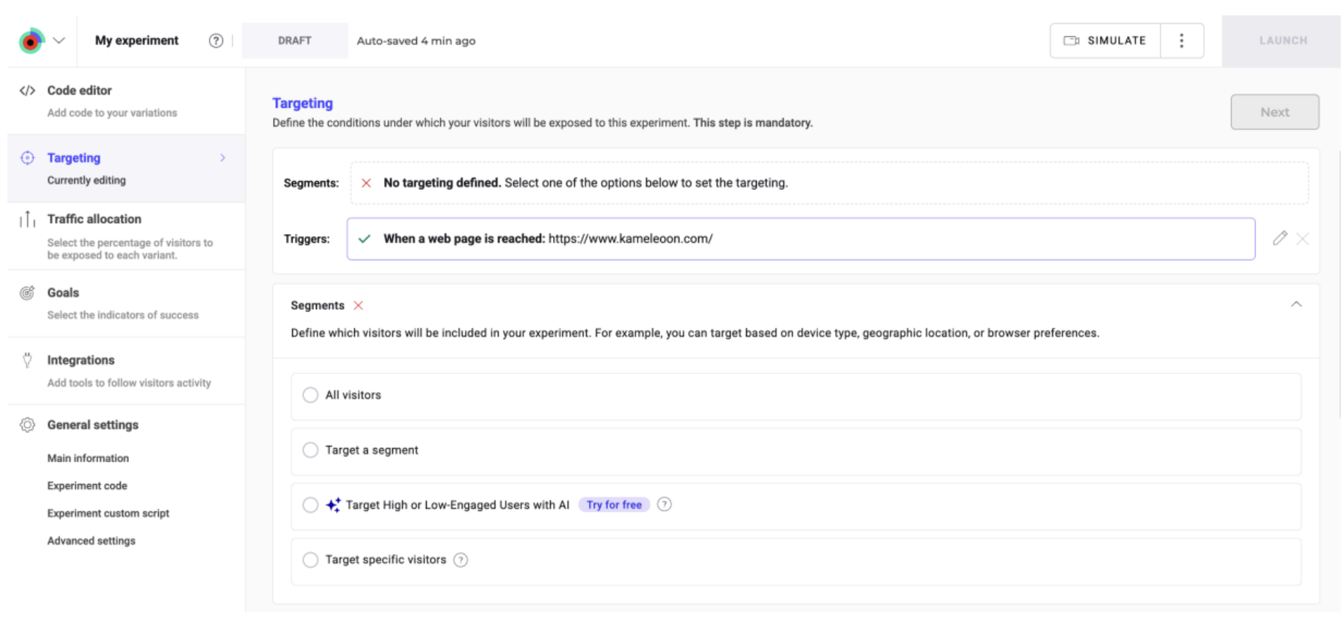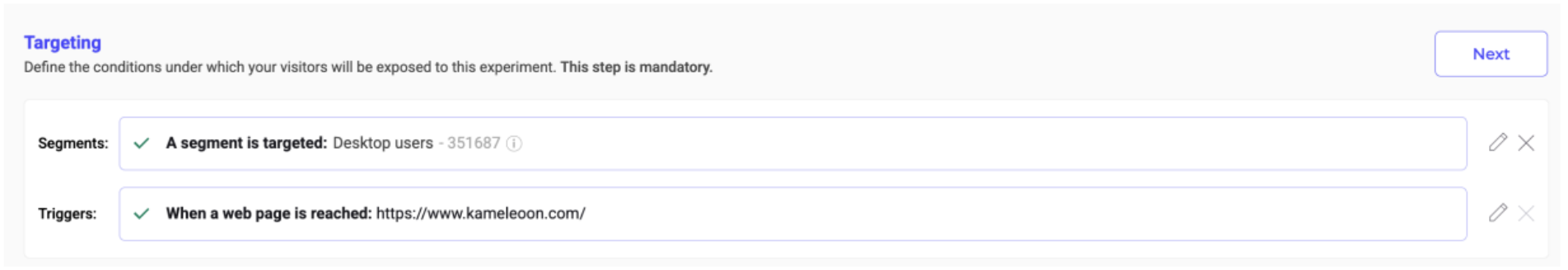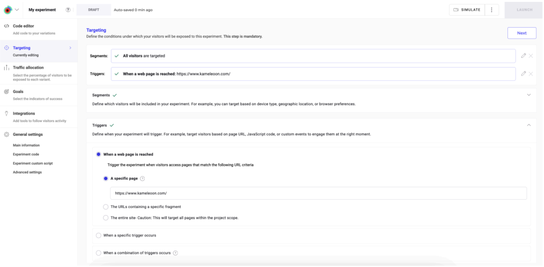 You can target the pages you have modified in your experiment. When you select this option, the campaign will apply to the URLs of all pages where changes have been made, based on the modifications configured in the editor.
