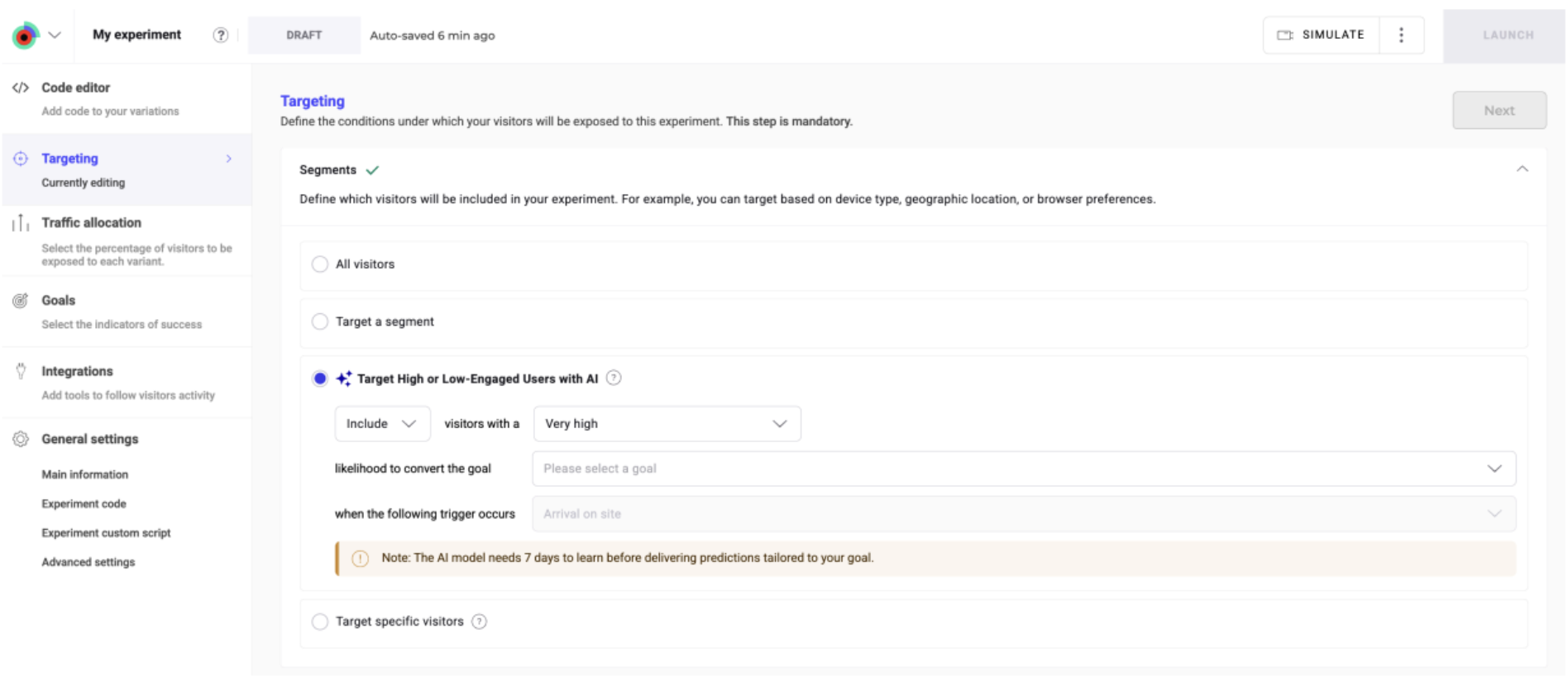 Use AI Predictive Targeting to reach visitors most likely to convert—without manually creating a segment.