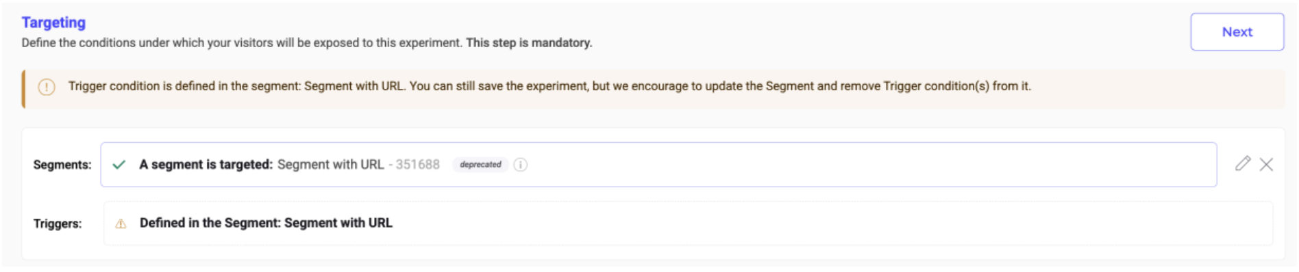 If a legacy segment contains a Trigger condition, it will be marked as deprecated.