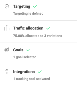 For example, if you have three variations and set a 75% diversion, Kameleoon allocates 25% of the total traffic to the original page and 25% to each variation.