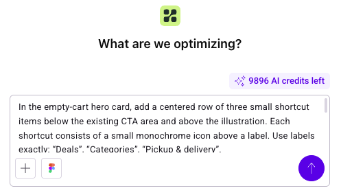The PBX interface opens with the targeted element and suggested prompt ready for review. You can then finalize the design and launch the experiment.