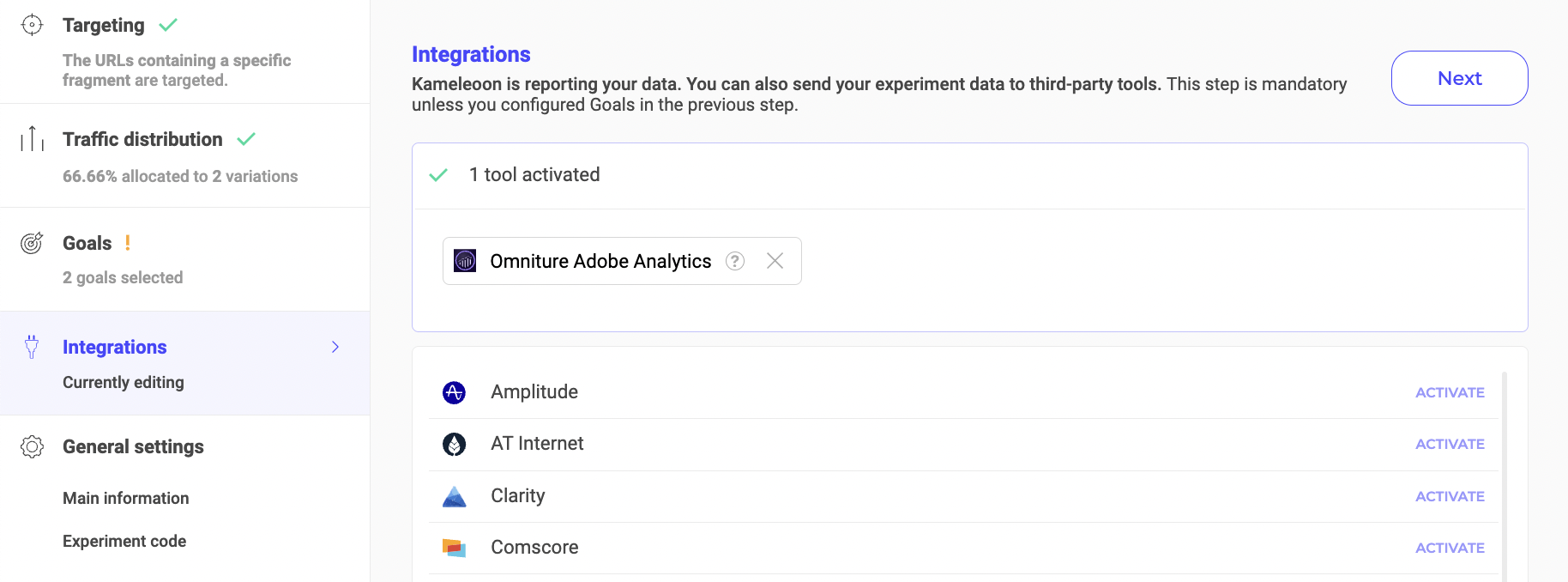 The results of your experiments will be transmitted to Adobe Analytics if the tool's script is installed on your pages.