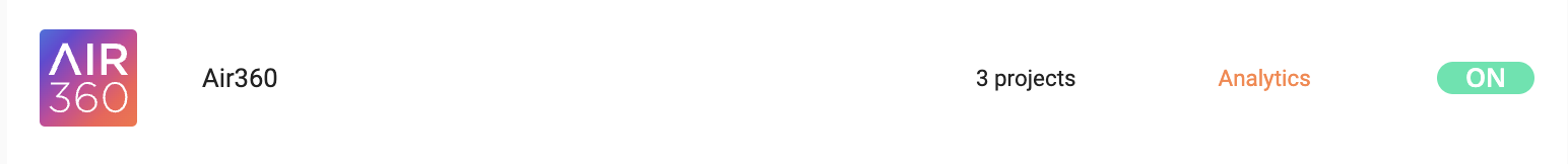 You will then see an ON toggle to the right of the tool’s line and the number of projects on which the tool is configured.