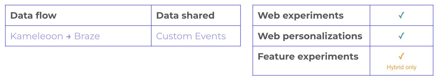 With this integration, you can use your Kameleoon experiment and personalization data in Braze to improve targeting, segmentation, and communication with your users.