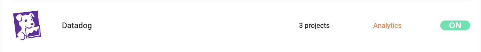 You will then see an ON toggle to the right of the tool’s line and the number of projects on which the tool is configured.