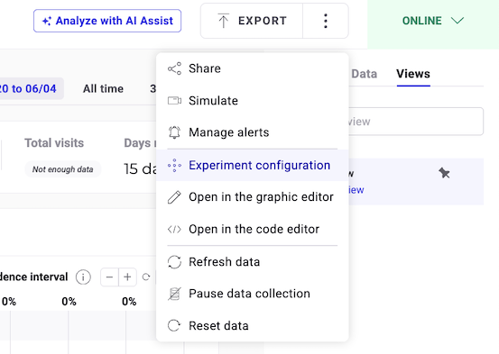 - Click the three-dots menu > Experiment configuration.
