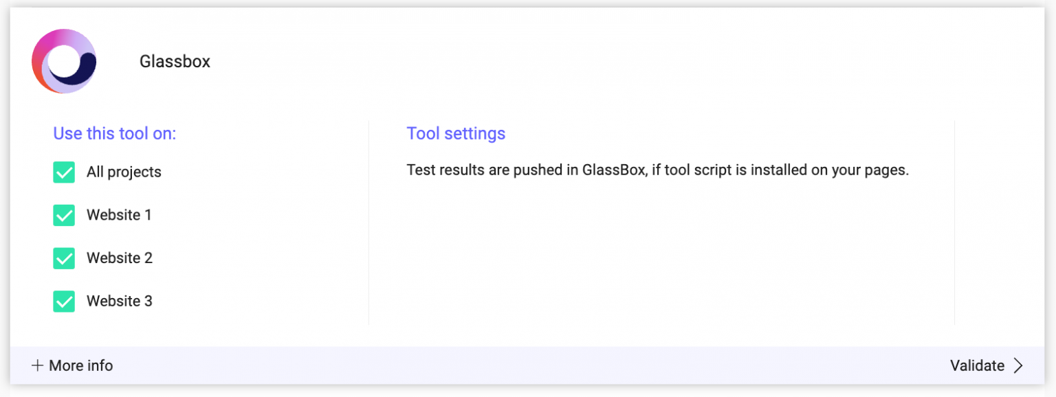 - Select the projects on which you want to activate Glassbox.