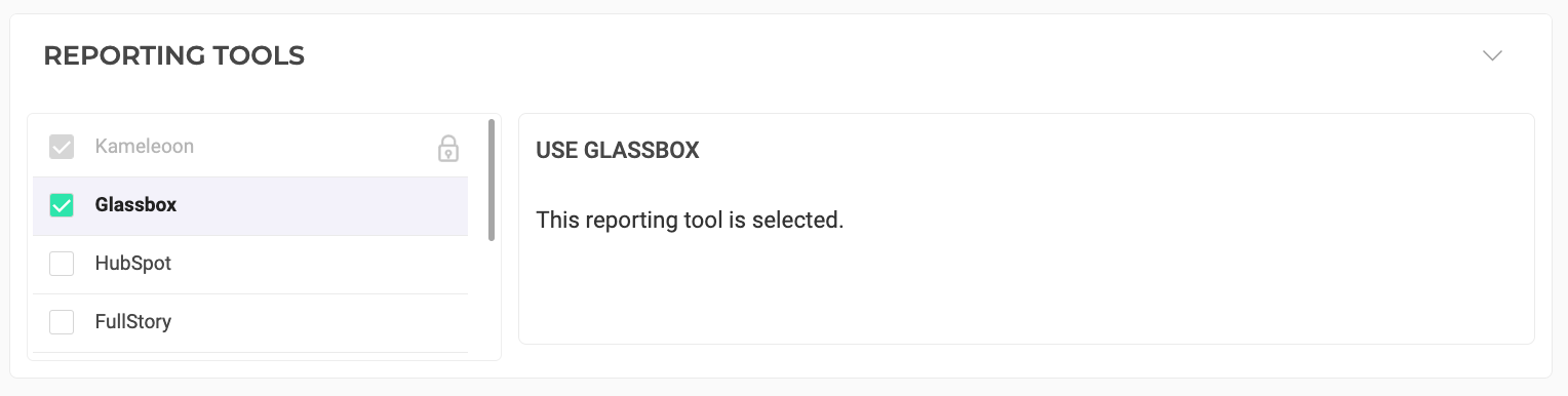 Once Glassbox is set as a reporting tool for an experiment, you can select (or deselect) it via the Kameleoon Results page. To do this: