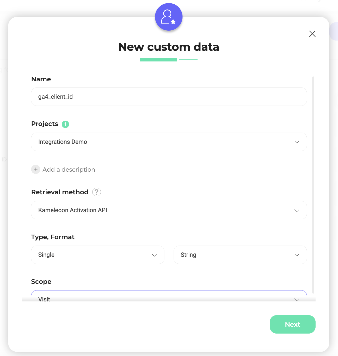 If you are using Kameleoon in a web backend or server-side setup, you can transmit the GA4 client_id by defining it as a custom data field (for example, ga4_client_id).
