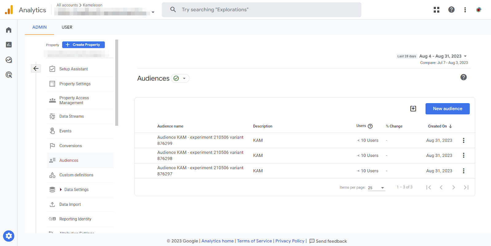 If you want to use Google Analytics 4 Audiences in Kameleoon, refer to this article.