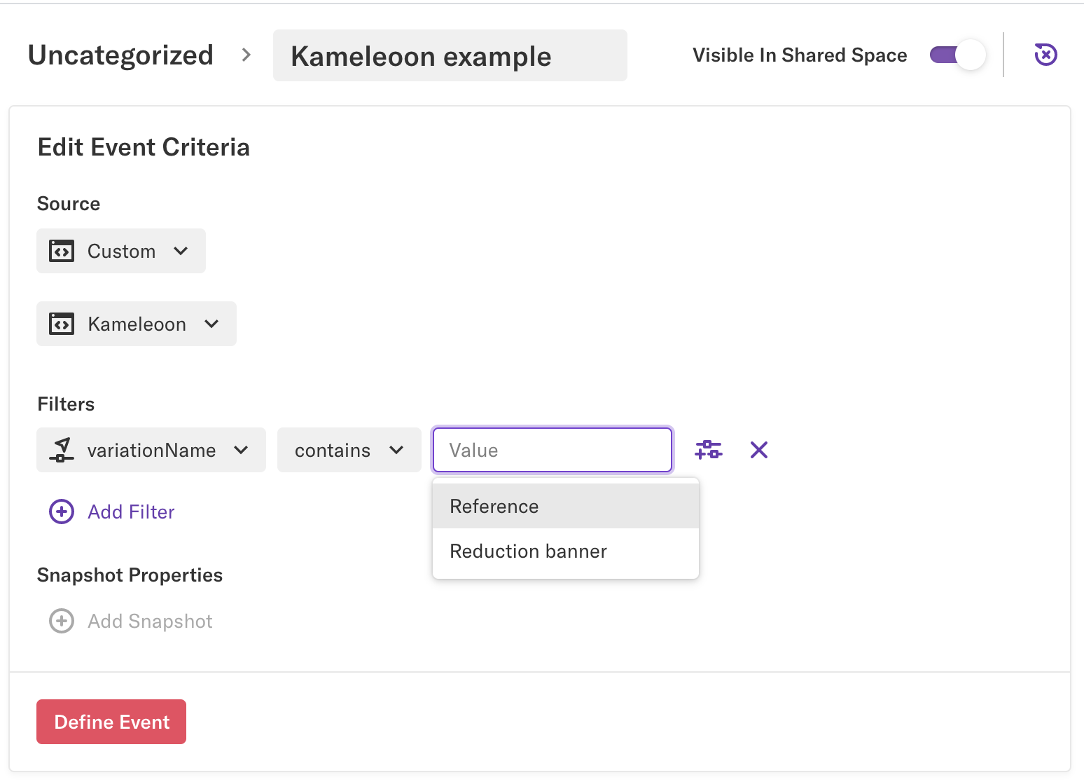 To take advantage of the tools offered by Heap, you can create a Heap segment using a Kameleoon variation. To do this: