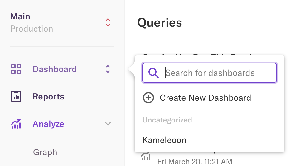 To analyze the segment created from a Kameleoon variation, you must generate a query. To do so: